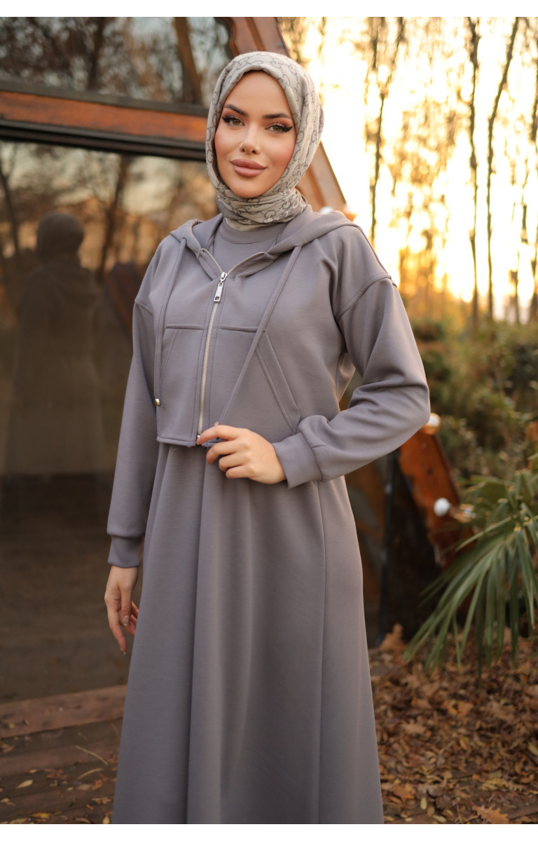 BOLEROLU İKİLİ ELBİSE 71236 FÜME